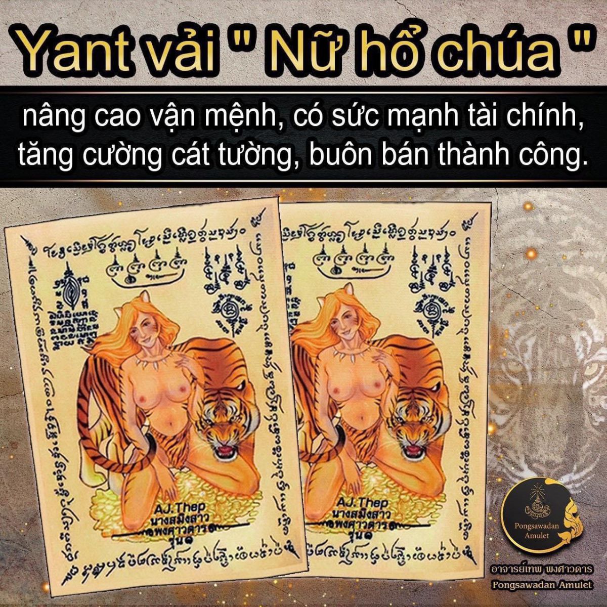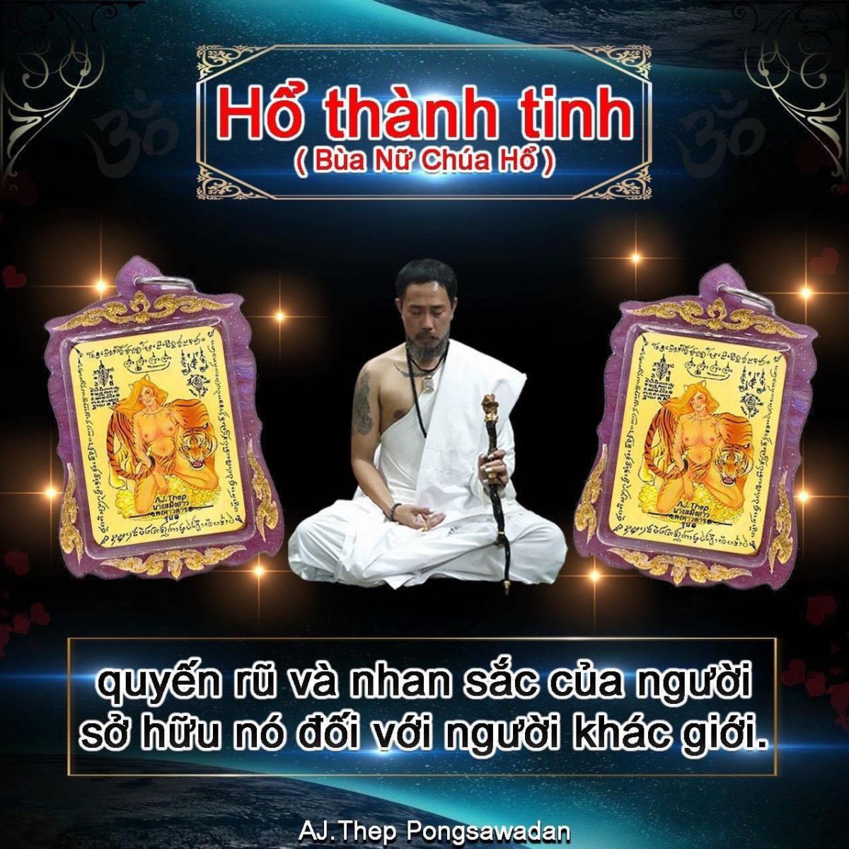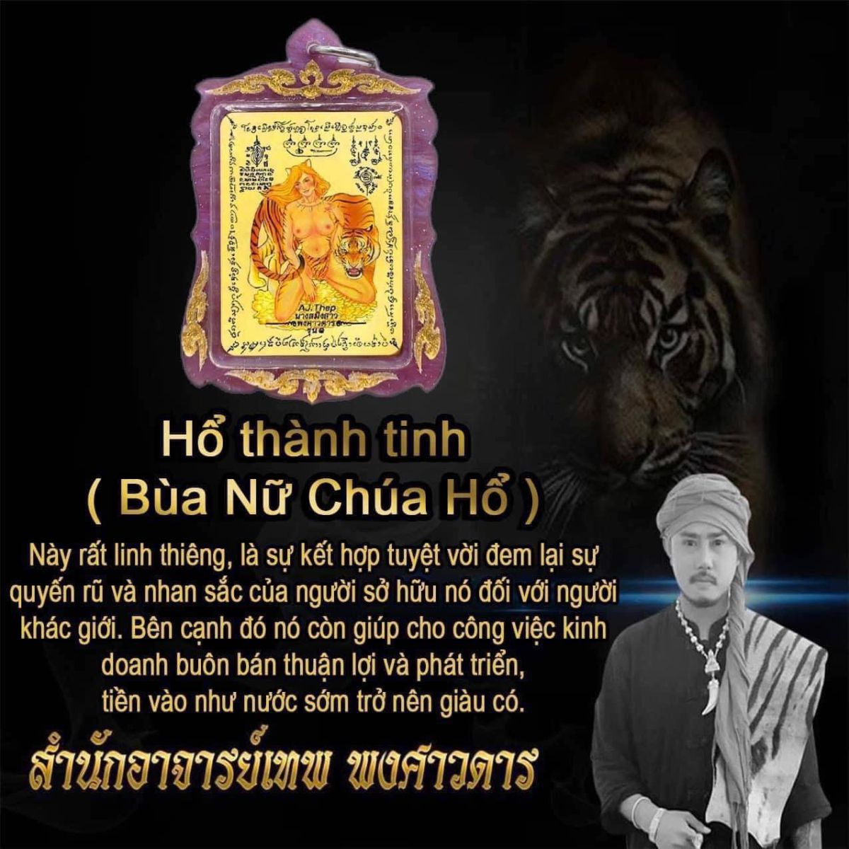 Của Aj Thep Pongsawadan - là 1 trong những pháp sư nổi tiếng nhất  chuyên về Hổ, xăm phép, giải hạn và các lễ tình duyên.
